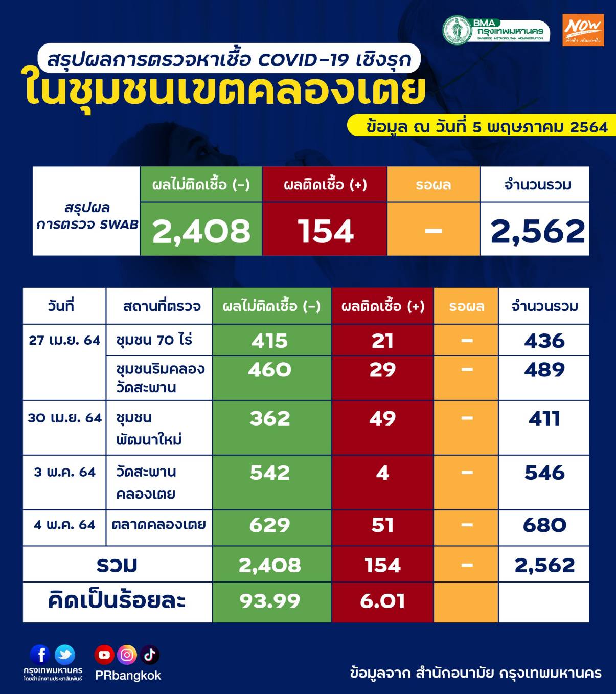 ผลตรวจโควิดคลองเตยพบผู้ติดเชื้อ6%