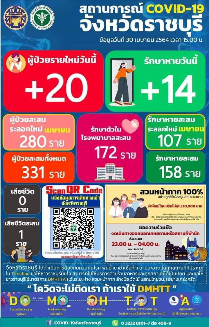 ราชบุรียังพุ่งไม่หยุดวันนี้ติดเชื้ออีก20ราย