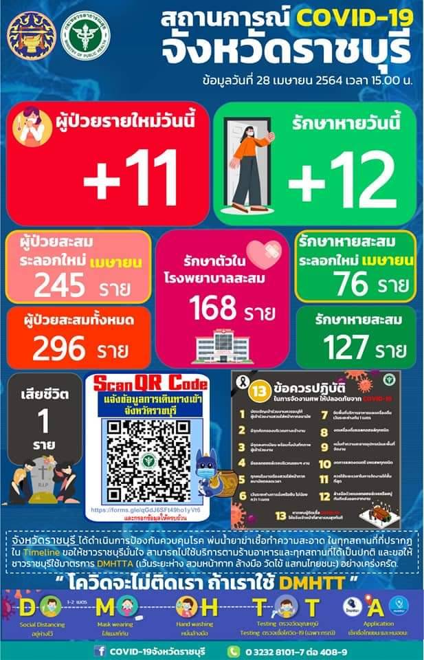 ราชบุรีวันนี้มีผู้ติดเชื้อเพิ่ม11รายตาย1