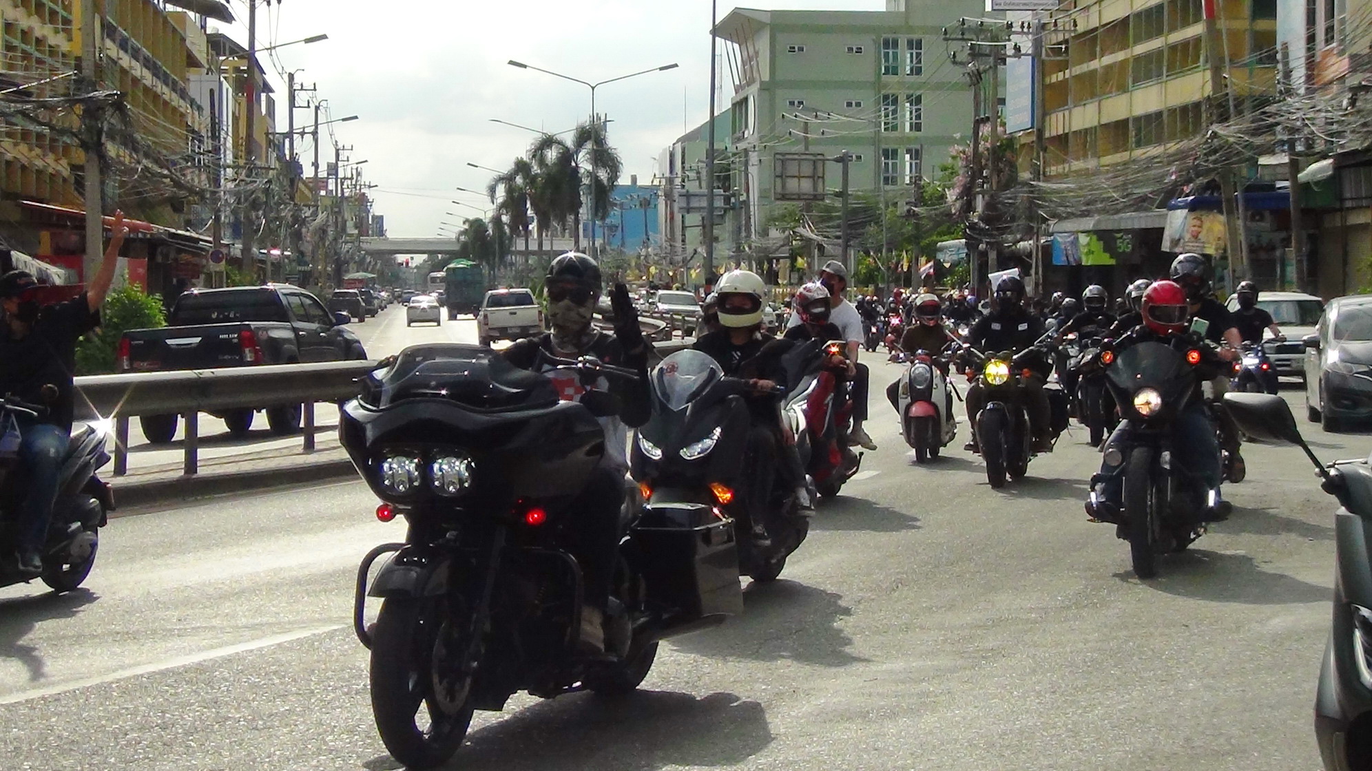 'คาร์ม็อบ'มาจริง!!ขับรถบีบแตรชูสามนิ้ว โชว์ป้ายไล่นายกทั่วเมืองแปดริ้ว