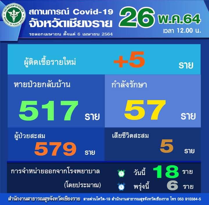 เชียงราย-จังหวัดเชียงราย พบผู้ติดเชื้อรายใหม่เพิ่มขึ้น 45 ราย แยกเป็นจาก คลัสเตอร์ โรงงานหอม อ.แม่สาย มากถึง 38 รา...