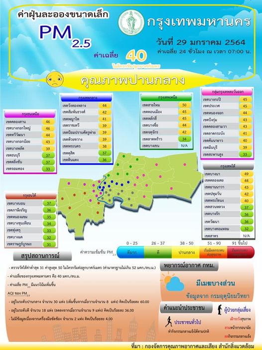 กทม.วันนี้อากาศดีค่าPM2.5ต่ำทุกพื้นที่