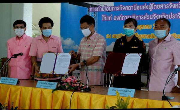 พิธีลงนามถ่ายโอนสถานีขนส่งผู้โดยสารระหว่าง สำนักงานขนส่งจังหวัดปราจีนบุรี กับ องค์การบริหารส่วนจังหวัดปราจีนบุรี(อบจ.)