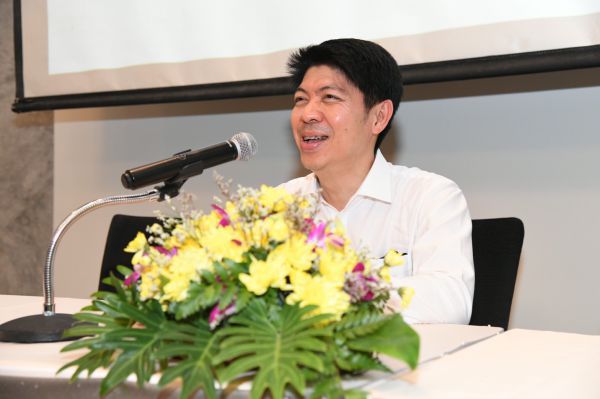 มอบเสื้อเครือข่ายสื่อมวลชนไทยใส่ใจทางเลือกใหม่พลังงานไฟฟ้าให้กับนายกิตติพงษ์ ภิญโญตระกูล (ซ้าย) รองเลขาธิการ สำนักงานคณะ...