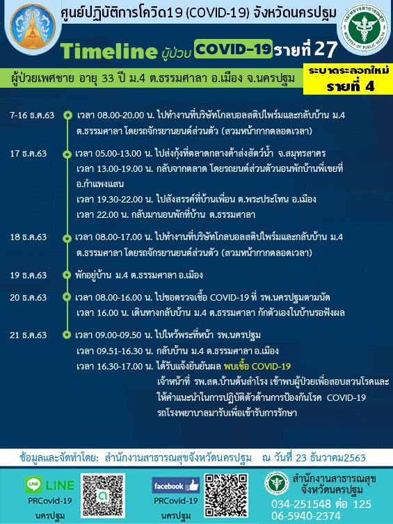นครปฐม-ศบค.จังหวัดนครปฐม เผยไทม์ไลน์ ผู้คิดเชื้อไวรัส โควิด-19 รายที่ 4-8