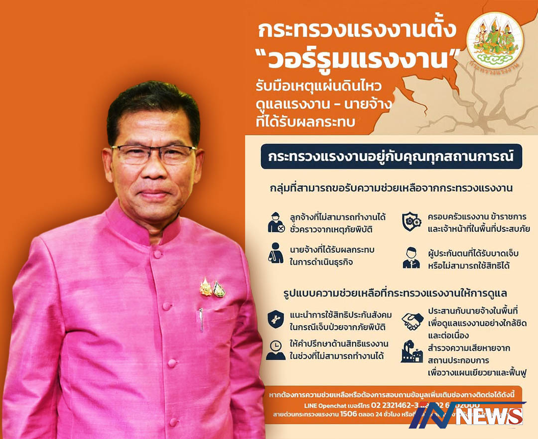 รัฐฯเดินหน้ามาตรการอุ้มนายจ้าง-ลูกจ้าง ที่ได้รับผลกระทบจากแผ่นดินไหวด่วน