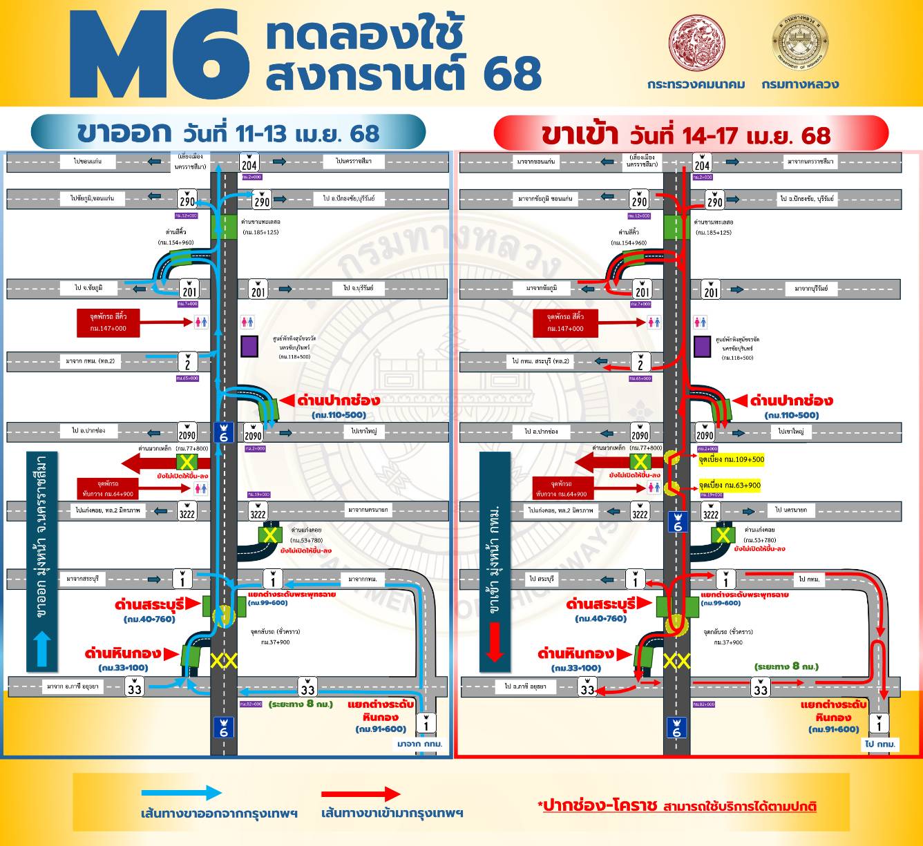 กรุงเทพฯ-กรมทางหลวง เปิดให้ทดลองวิ่งฟรี! มอเตอร์เวย์ M6 ช่วงหินกอง - นครราชสีมา ตลอด 24 ชั่วโมง ในช่วงเทศกาลสงกรานต์ 256...