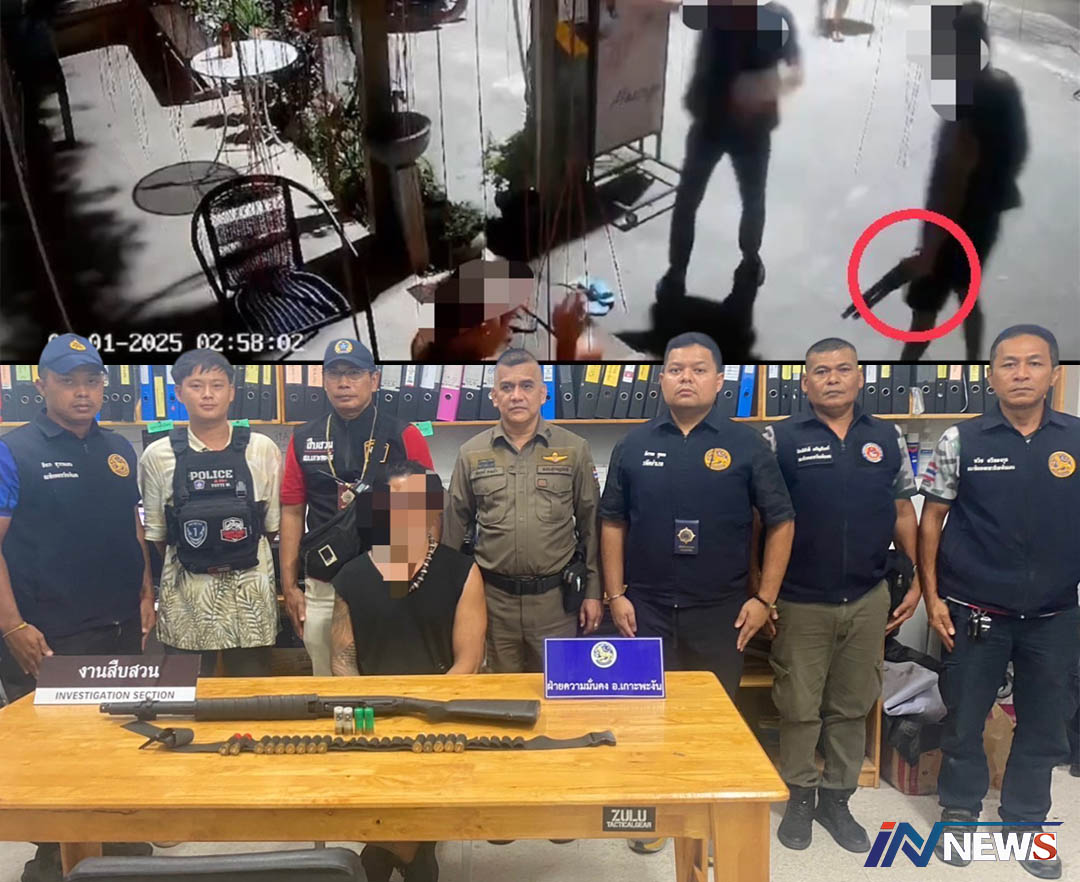 รวบแล้ว!คลิปหนุ่มช่างร้านสักโชว์กร่าง ถือปืนเดินหาเรื่องนักท่องเที่ยวต่างชาติ