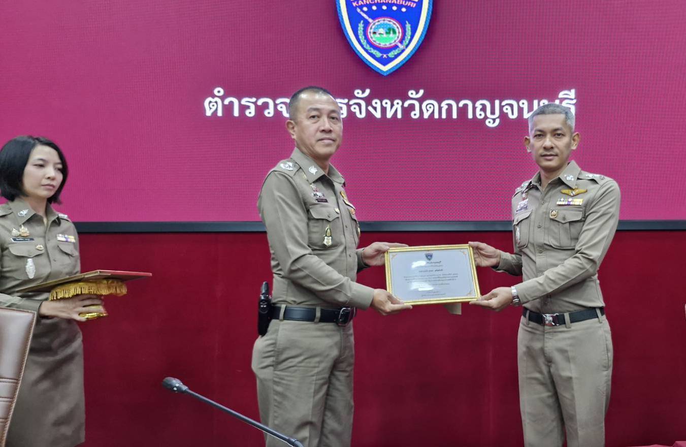 ผบก.ตร.กาญจน์มอบประกาศเกียรติคุณ ตำรวจชุดสืบสวนสภ.ลูกแกมีผลงานดี