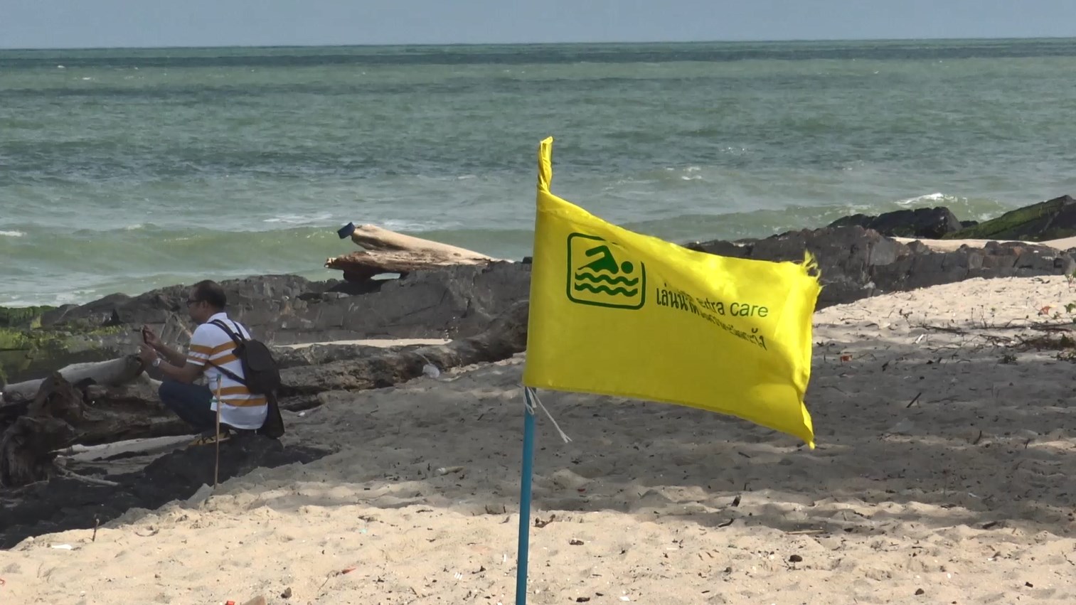 ทน.สงขลาปักธงเหลืองแทนธงแดงเตือน ริม2ชายหาดหลังมีคลื่นลมเบาลงแล้ว