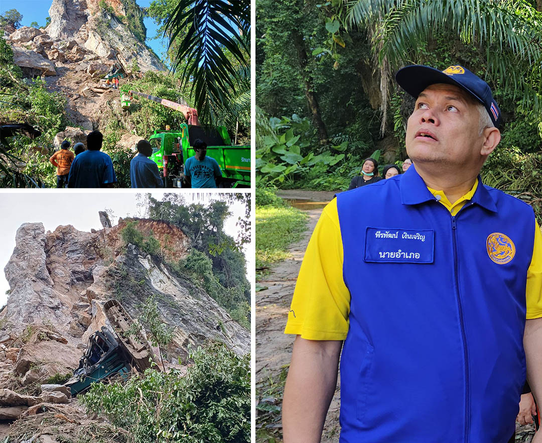 พังงา-นายอำเภอสั่งตรวจสอบพื้นที่หินถล่มทับรถแบคโฮคนขับตาย เตรียมตรวจสอบพื้นที่เอาผิดผู้ลักลอบตักหิน