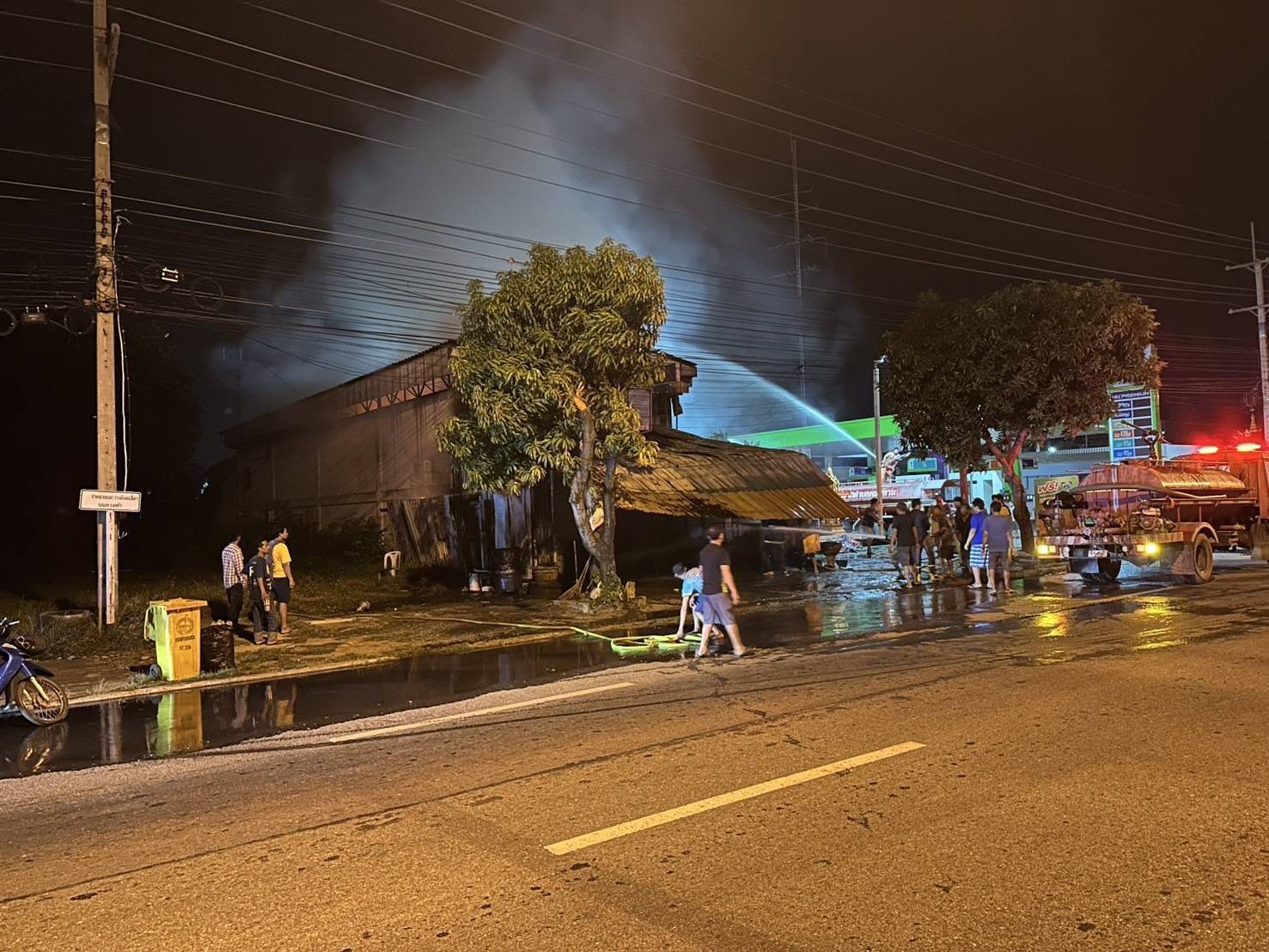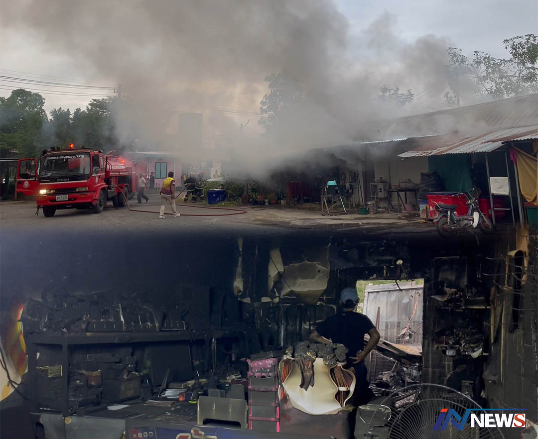ไฟไหม้ร้านซ่อมรถจยย.อยู่ใกล้ปั้มน้ำมัน โชคดีรถดับเพลิงมาทัน!ลอดหวุดหวิด