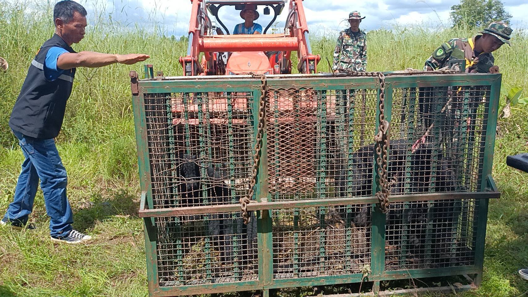 คนปราจีนดักจับหมีควายเขาใหญ่2แม่ลูก ได้คาสวนฝรั่งหลังลงมาหากินนอกป่า