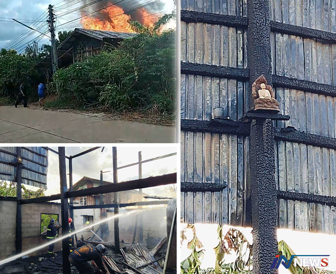 ลืออภินิหารหลวงปู่แหวนไฟไหม้บ้านวอด ไม่ระคายพระบูชาบนเสาบ้าน