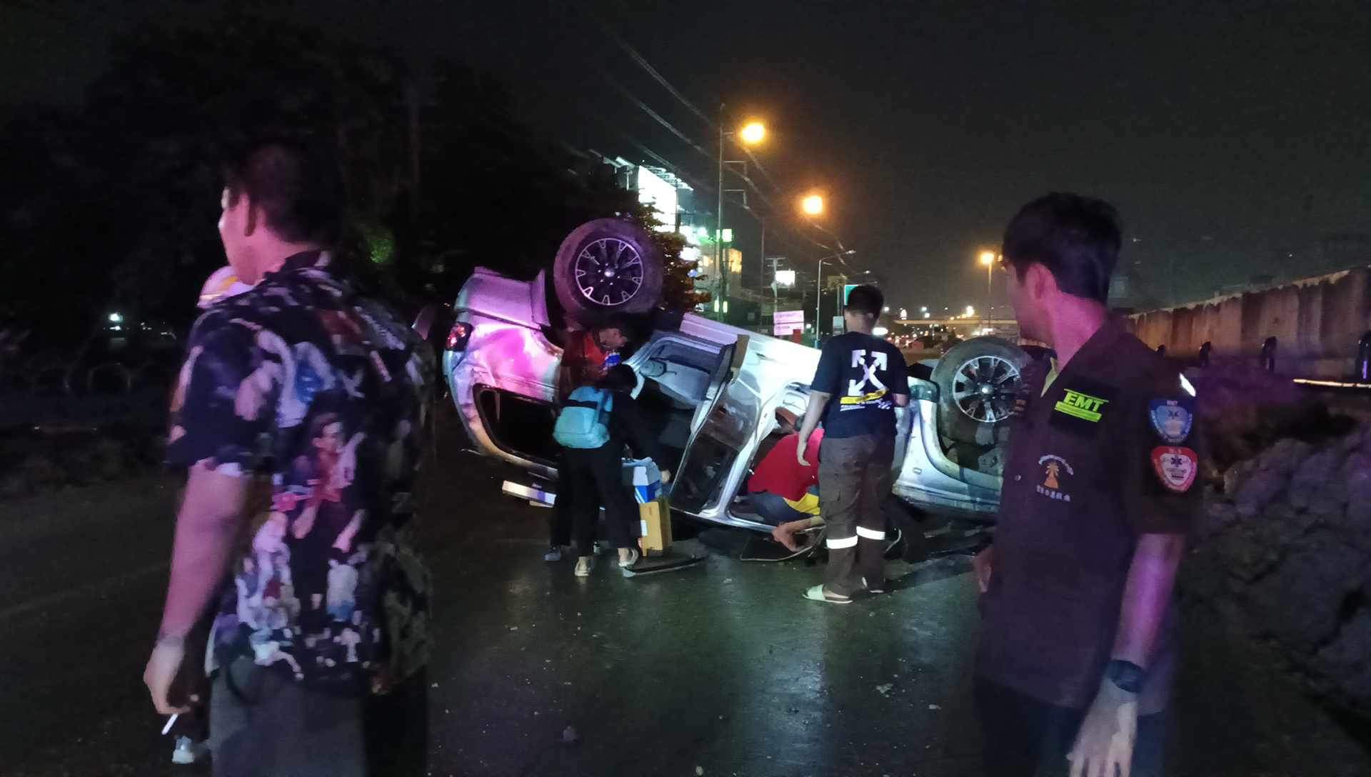สุดชุ่ย!สาวขับเก๋งเบรคลื่นรถคว่ำเกือบตาย กลางถ.เพชรเกษม/ฝากผู้รับเหมา