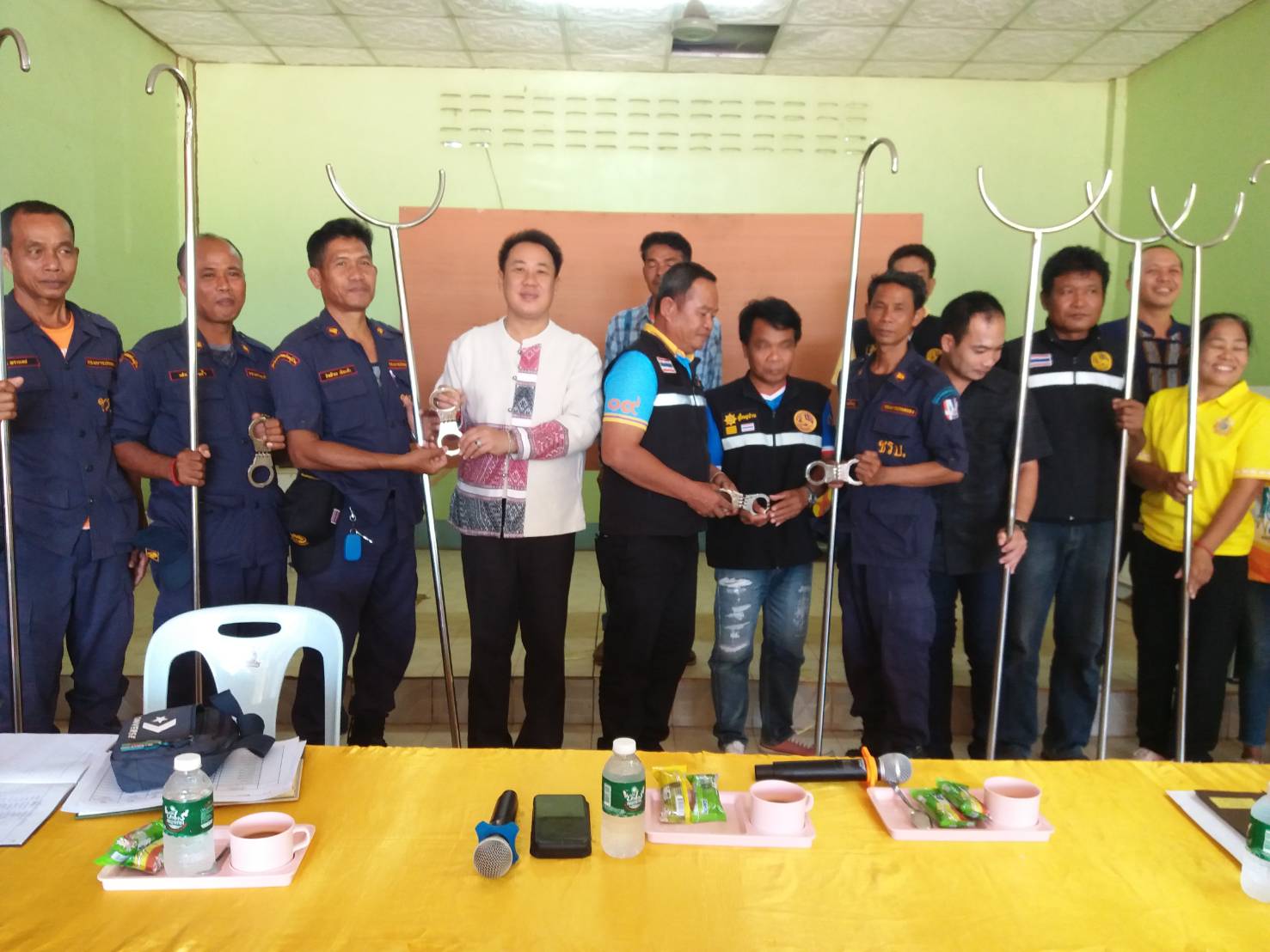 นอภ.เมืองหนองบัวลำภูจัดมอบอุปกรณ์ ไม้ง่าม-กุญแจมือระงับเหตุคนคลุ้มคลั่ง