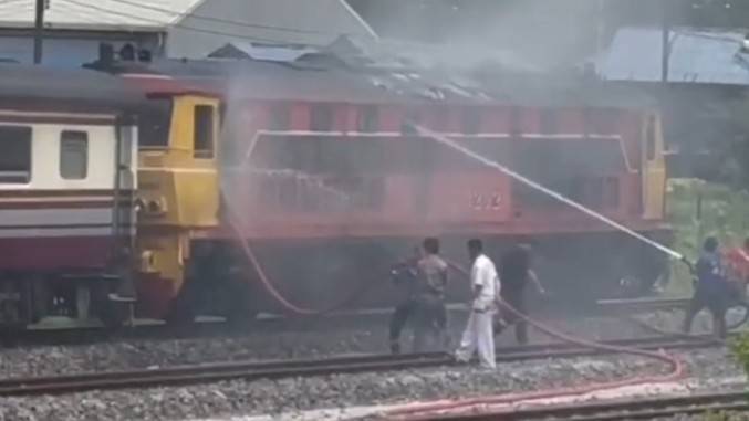 ระทึก!ไฟไหม้หัวรถจักรรถไฟวอดทั้งหัวฯ ขณะที่ผู้โดยสารหนีตายอลหมาน