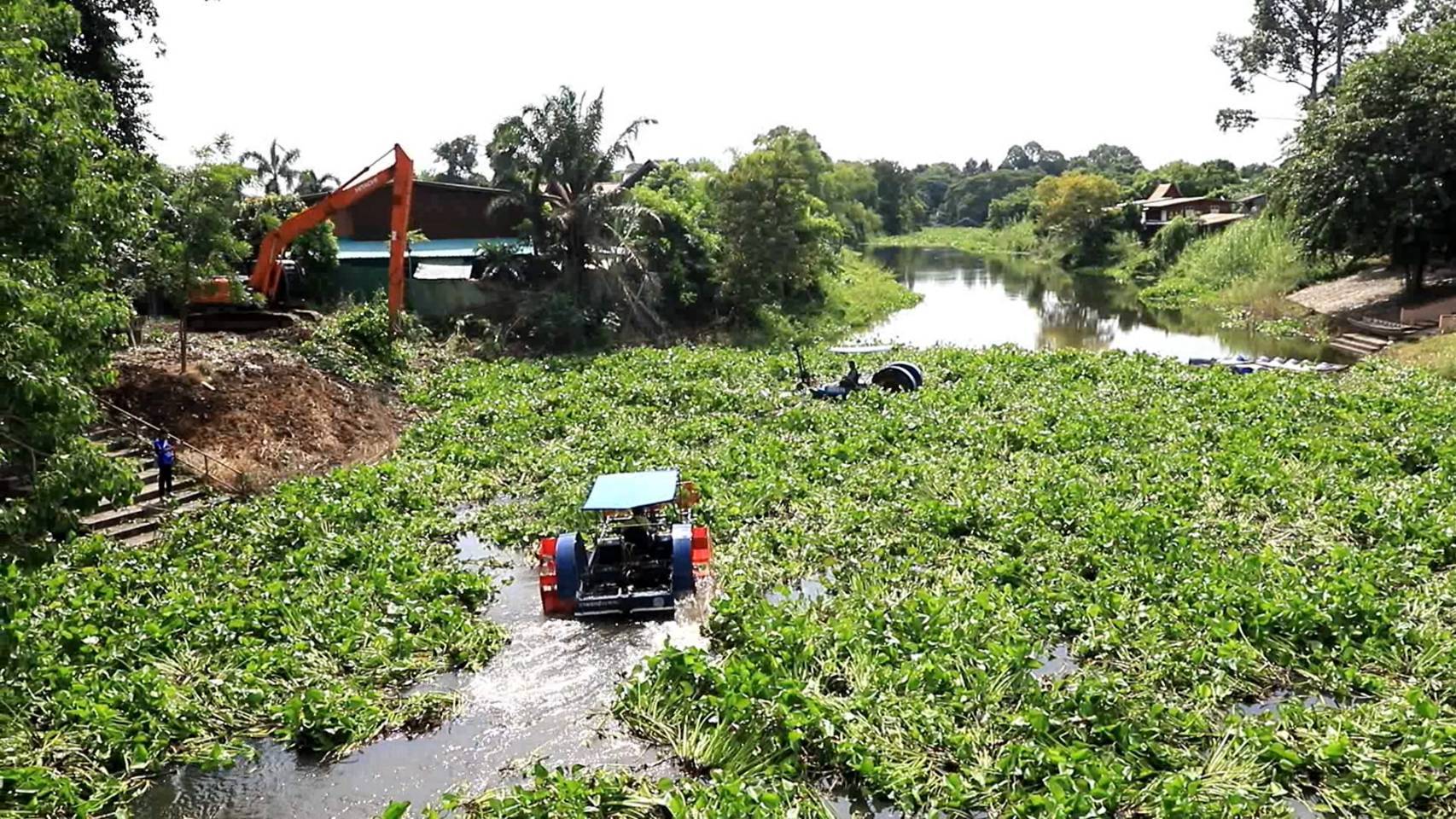ลพบุรีเร่งระบายเปิดทางน้ำรับมือน้ำท่วม ลุยกำจัดผักตบชวาในแม่น้ำลพบุรี