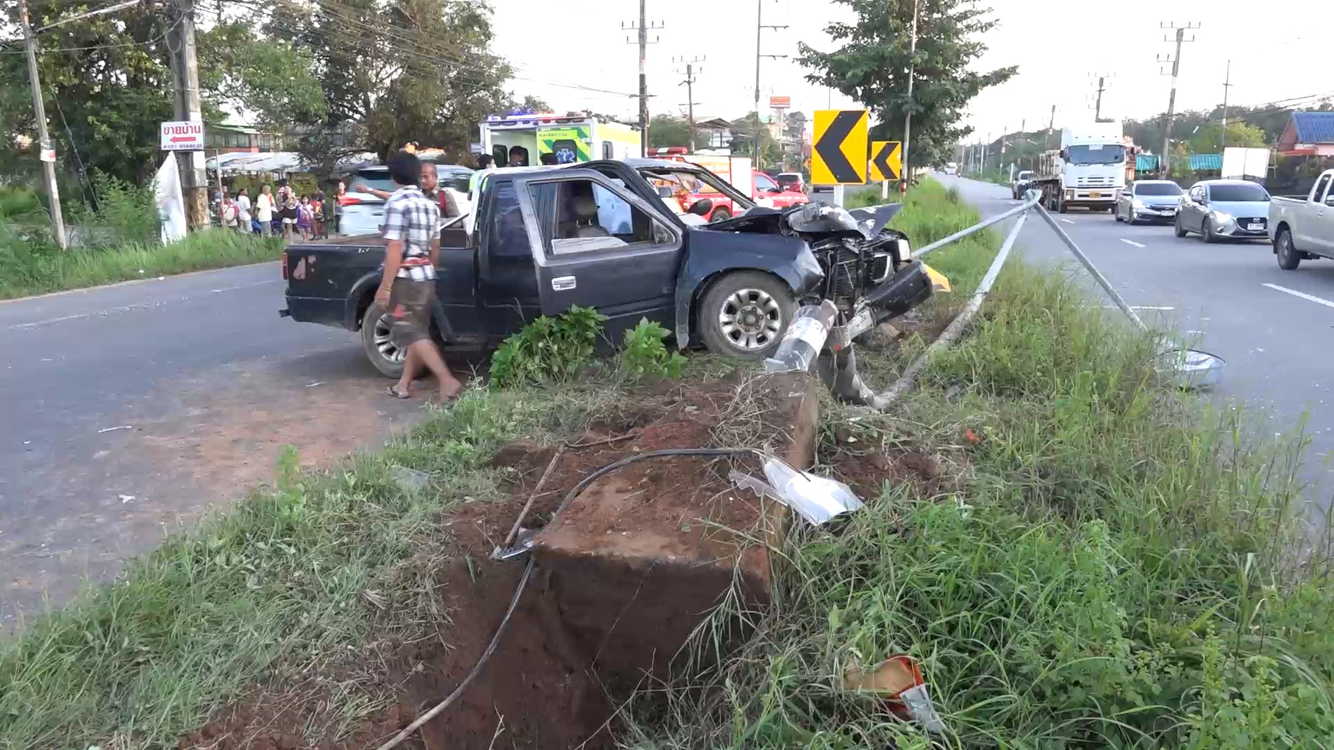 กระบะขับเสียหลักชนเสาไฟบนเกาะกลาง มีผู้ได้รับบาดเจ็บ2ราย