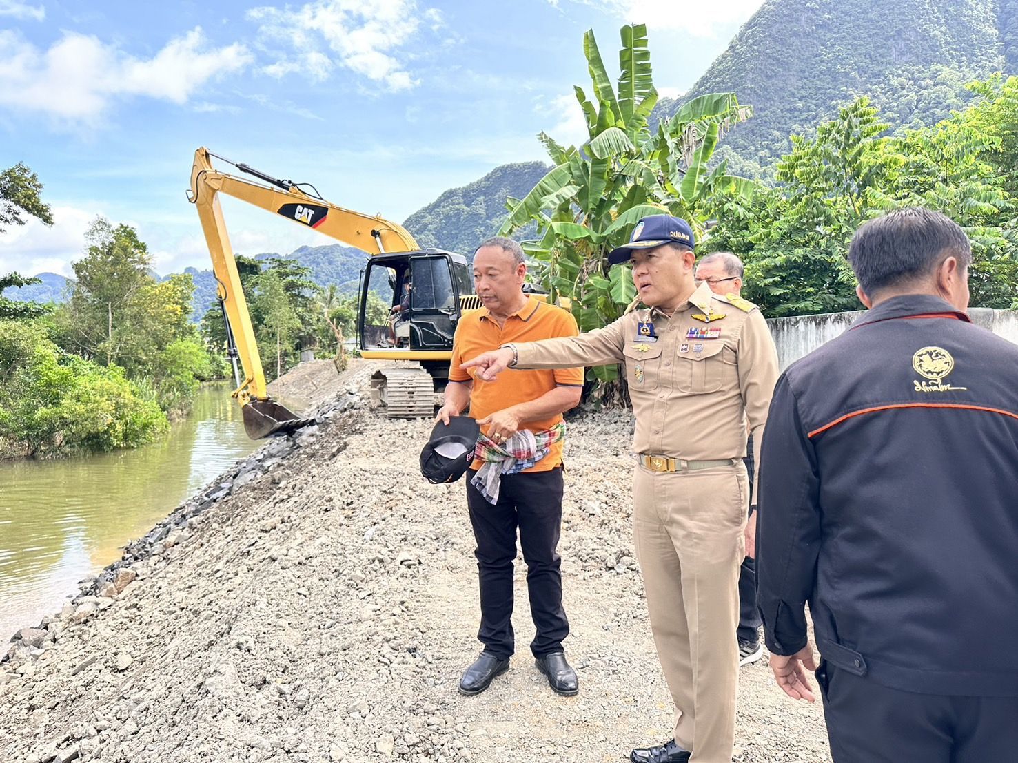ผู้ว่าฯพังงาลงพื้นที่ตรวจการปรับแนวตลิ่ง น้ำกัดเซาะดินสไลด์ถึงแนวบ้านเรือน