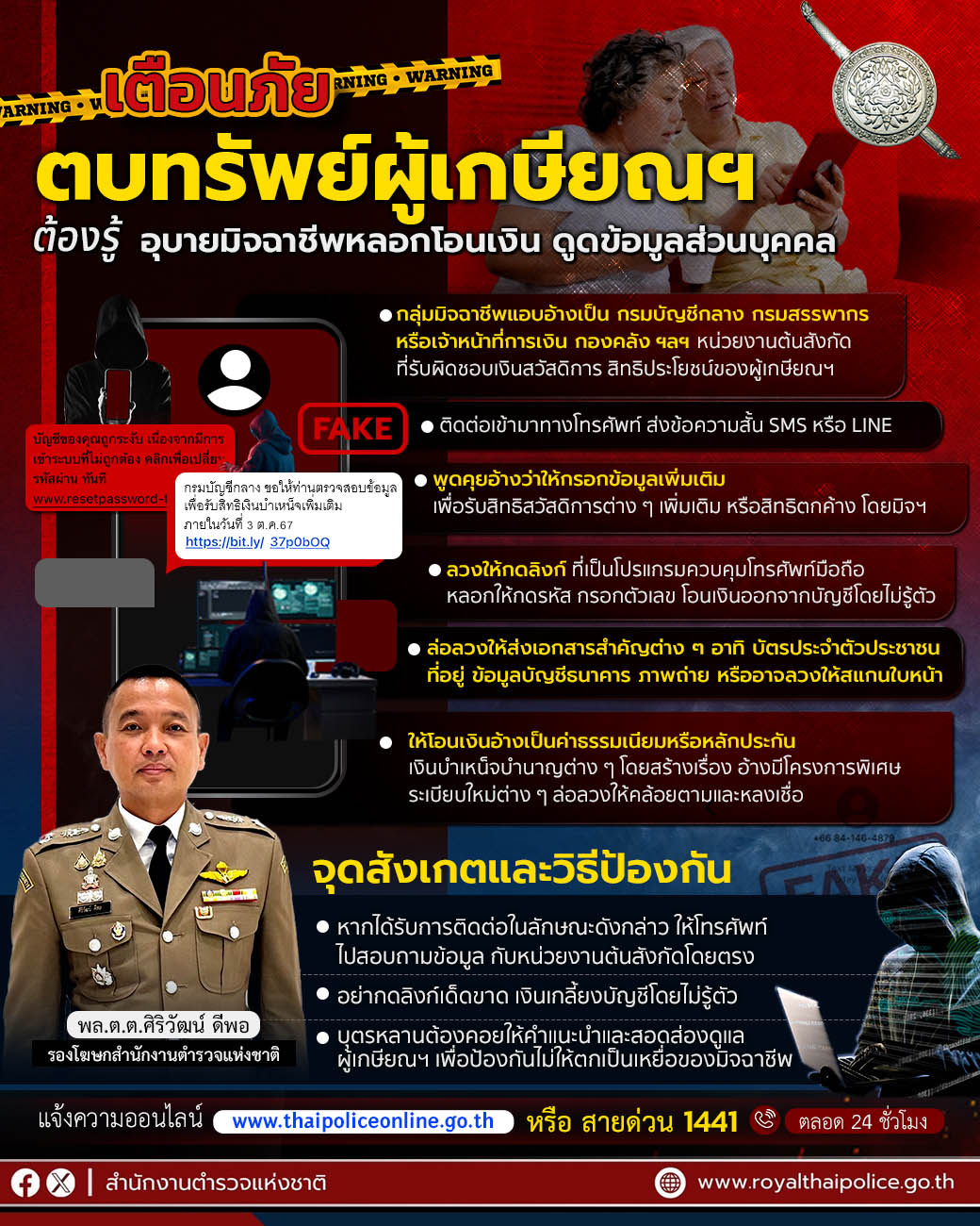 สตช.เตือนมิจฉาชีพฉวยโอกาสตบทรัพย์ ผู้เกษียณหลอกโอนเงินและข้อมูลส่วนตัว