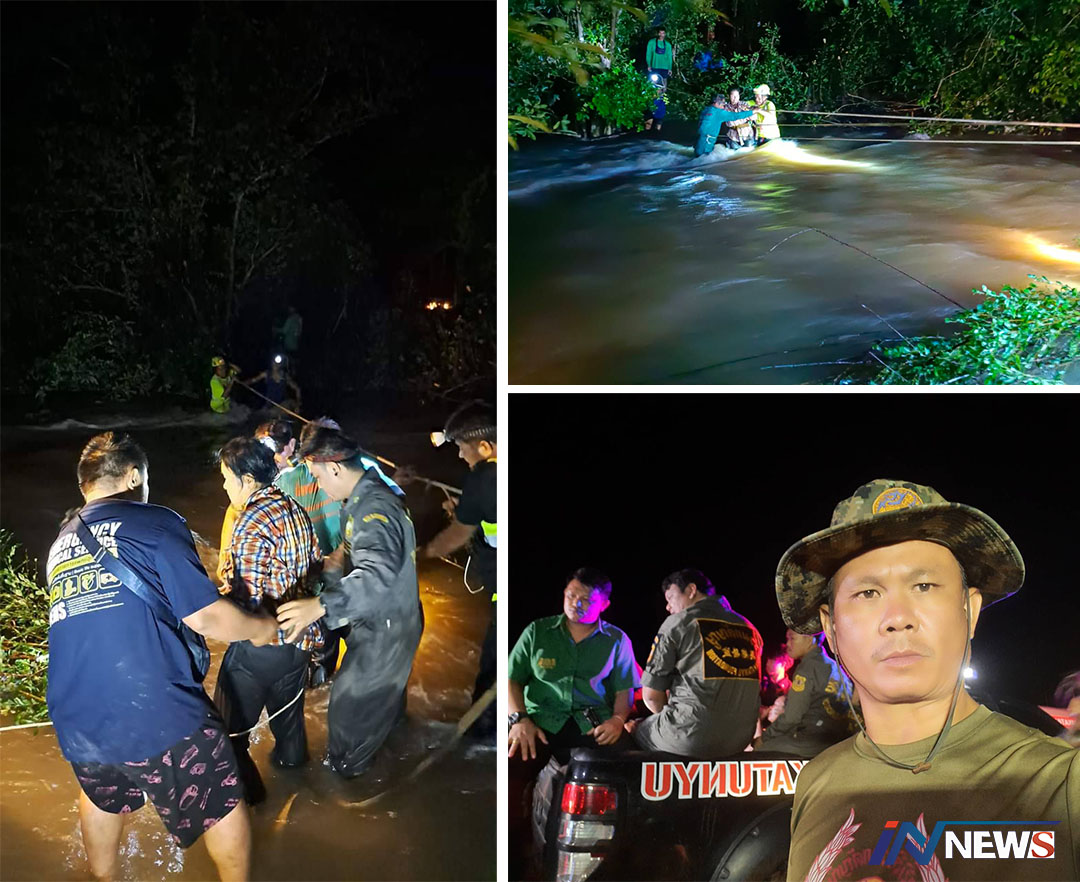 น้ำป่าเขาใหญ่ไหลเข้าท่วมหมู่บ้านตีเขา 3ชีวิตติดในขนำกู้ภัยต้องระดมกำลังช่วย