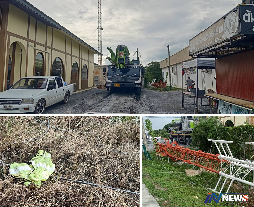 เสาสัญญาณโทรศัพท์ที่นครปฐมล้มทับ พนักงานค่ายมือถือสาหัส1ราย