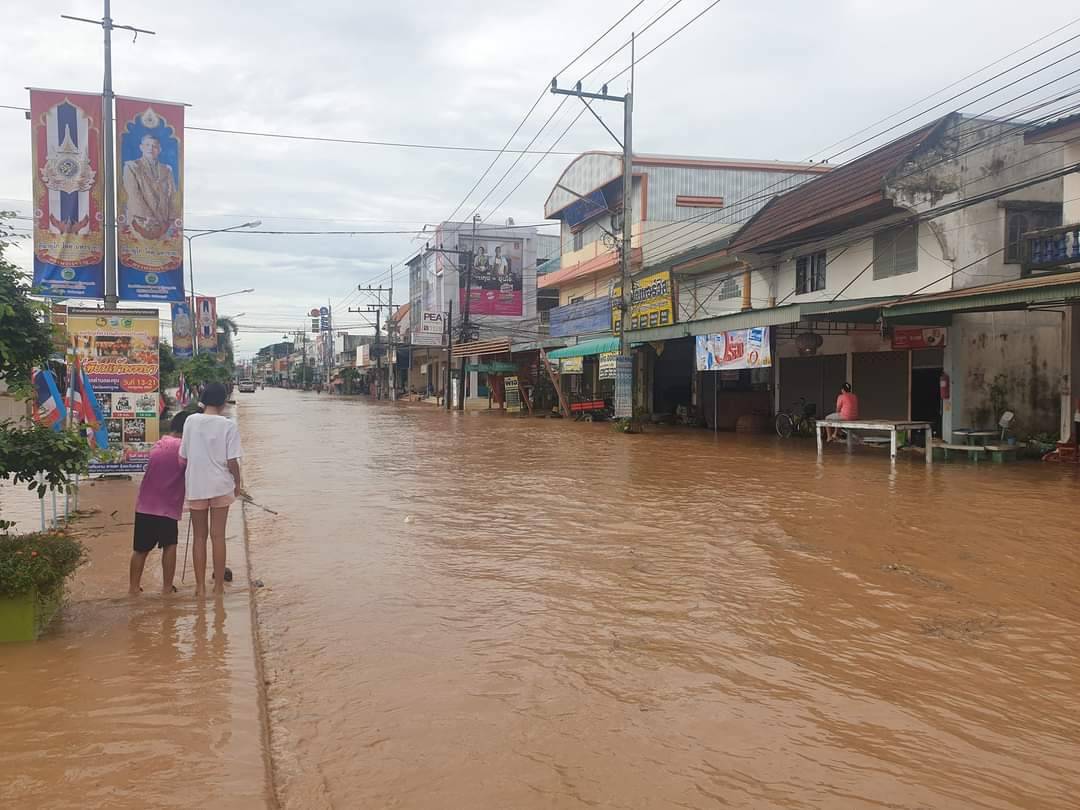 ฝนกระหน่ำวังโป่งทั้งคืนส่งผลน้ำป่าทะลัก เข้าท่วมใจกลางอำเภอสั่งปิดรร.3วัน
