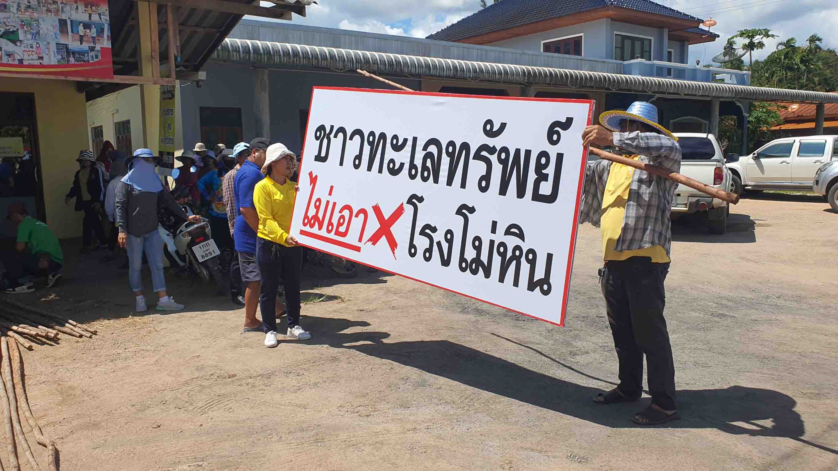 ชาวตำบลทะเลทรัพย์ชูป้ายคัดค้านโรงโม่ ปธ.สภามึน!หนังสือจว.มา9เดือนเพิ่งรู้