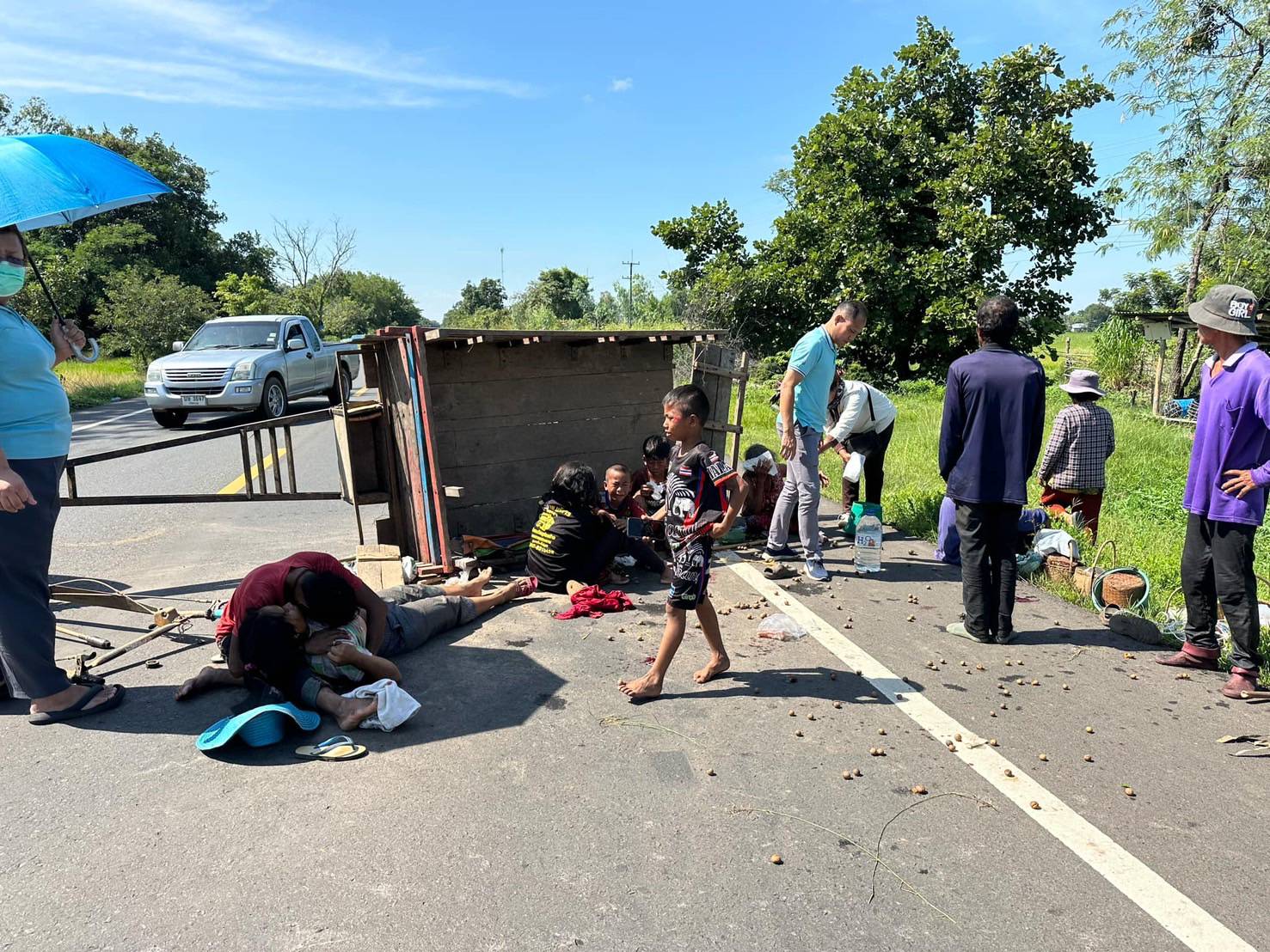 ศรีสะเกษ-สุดสลด หนุ่มควบรถไถนาพาลูกเมียเก็บเห็ด เผลอหลับในพลิกคว่ำเทกระจาดทำเมียดับ 1 เจ็บระนาว
