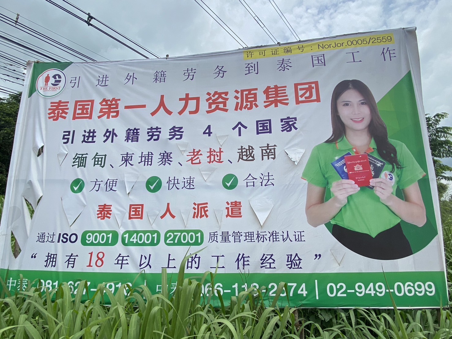 ป้ายภาษาจีนเสนอแรงงานต่างด้าว4ชาติ โผล่ริมถนน304พบ4จุดแขวงฯปลดแล้ว