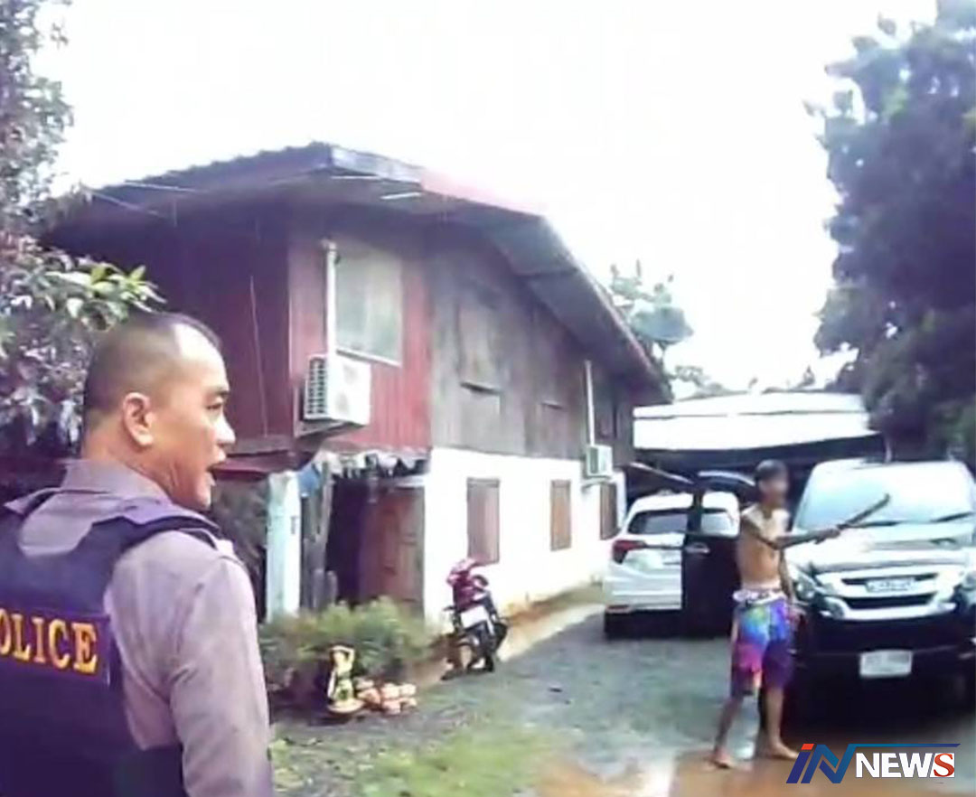ปราจีนบุรี -นาทีสยบ! หนุ่มหลอนทางประสาท-คลุ้มคลั่งควงมีดยาวเกือบเมตร แกว่งกวัดไปมา บางคราวฟันที่ประตูบ้าน พ...