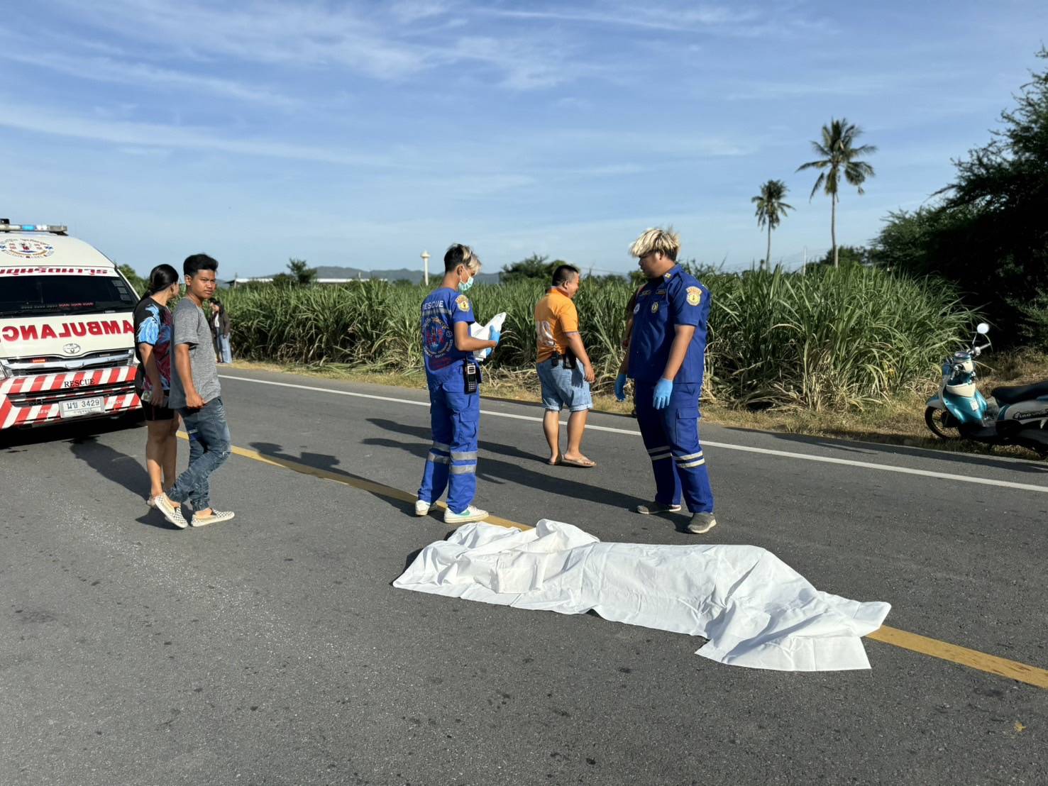 หนุ่มเมียนมาท่าม่วงเคราะห์ร้ายขี่รถจยย. ไปทำงานถูกรถเก๋งวีออสชนเสียชีวิต