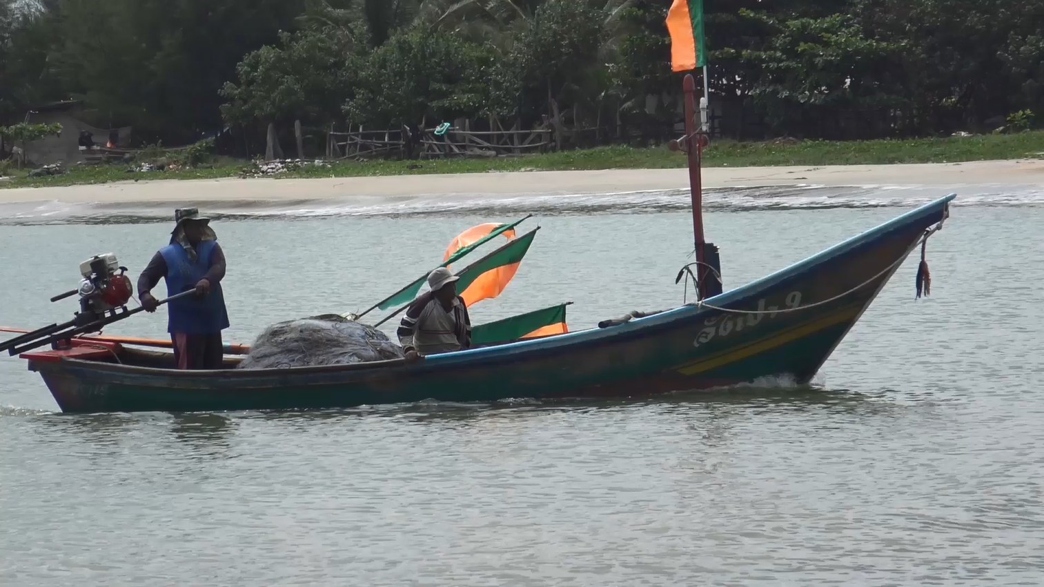 เรือประมงพื้นบ้านสงขลายังออกเรือเก็บ อวนปูกลางทะเลแม้สภาพอากาศไม่ดี