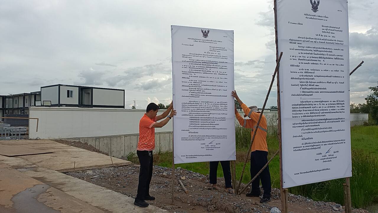 อบต.นนทรีติดป้ายระงับก่อสร้างอาคาร โรงงานทุนจีนที่ไม่ได้รับอนุญาตแล้ว