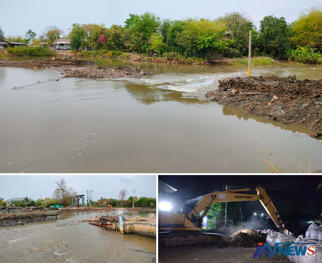 เอาไม่อยู่!ทำนบปากคลองประเวศพังอีก เหตุน้ำทะเลหนุนสูงขณะน้ำเค็มทะลักล้น
