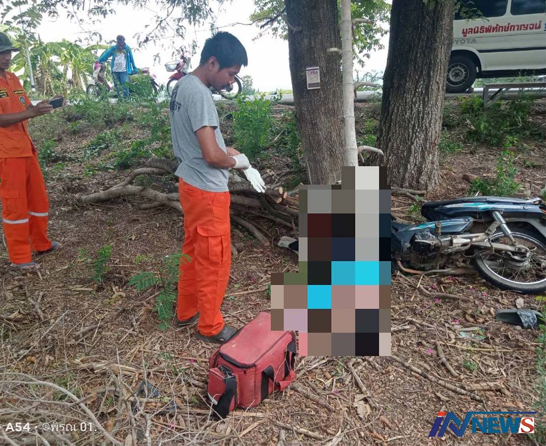 กาญจบุรีดับรายแรกเซ่น '7วันอันตราย' หนุ่มไทรโยซิ่งรถจยย.ชนต้นไม้