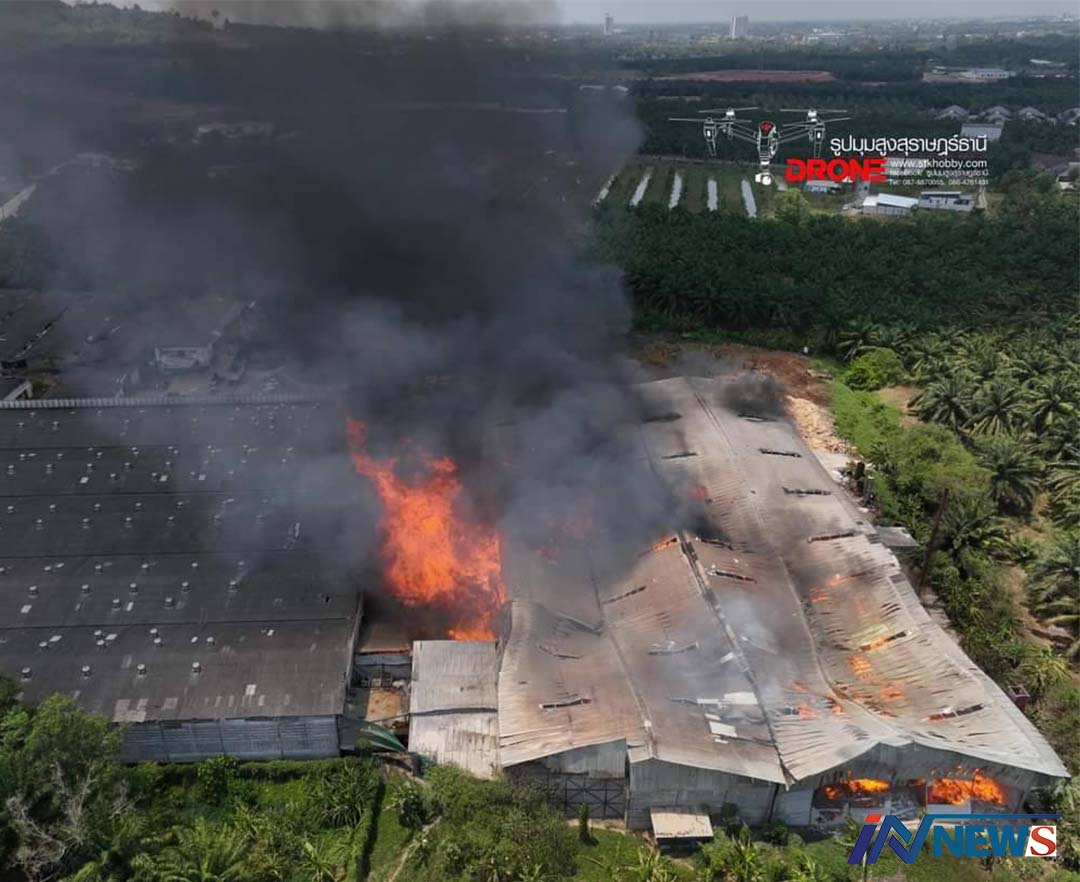 สุราษฏร์ธานี-ไฟไหม้วอด โรงงานแปรรูปไม้ยางพารา ผลิตปาร์เกต์ ส่งออกต่างประเทศ เสียหาย 100 ล้านบาท ระดมกู้ภัยทั้งจังหวัดฉีด...