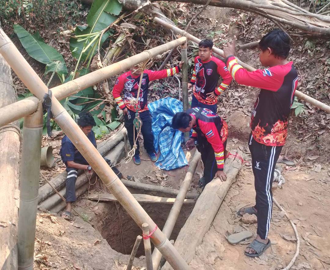 2หนุ่มใหญ่ทองผาภูมิรับเหมาขุดบ่อน้ำ ยิ่งขุดยิ่งลึก20เมตรขาดอากาศดับคาบ่อ