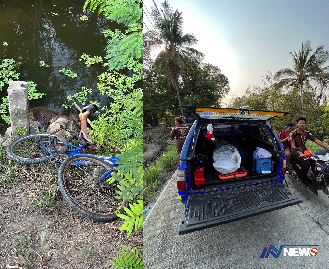 หนุ่มใหญ่เมาได้ที่ปั่นจักรยานเสียหลักล้ม หัวทิ่มจมน้ำดับคาคลองทราย
