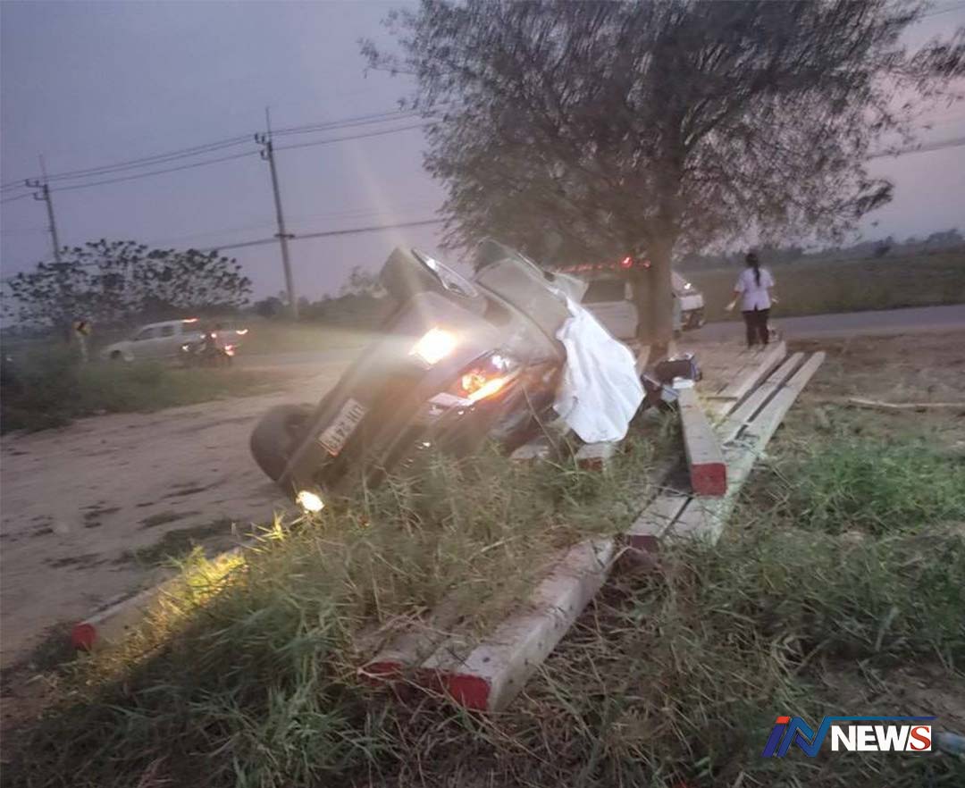 เจ้าของสวนผักด่านมะขามเตี้ยเคราะห์ร้าย ควบเก๋งเร็วสูงแหกโค้งพุ่งชนเสาดับคาที่