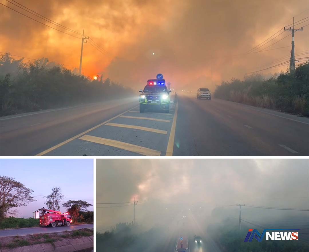 ชาวนครปฐมเดือดร้อนทั่วไฟไหม้ป่าปรือ ควันปกคลุมถนนยาวกว่า300เมตร