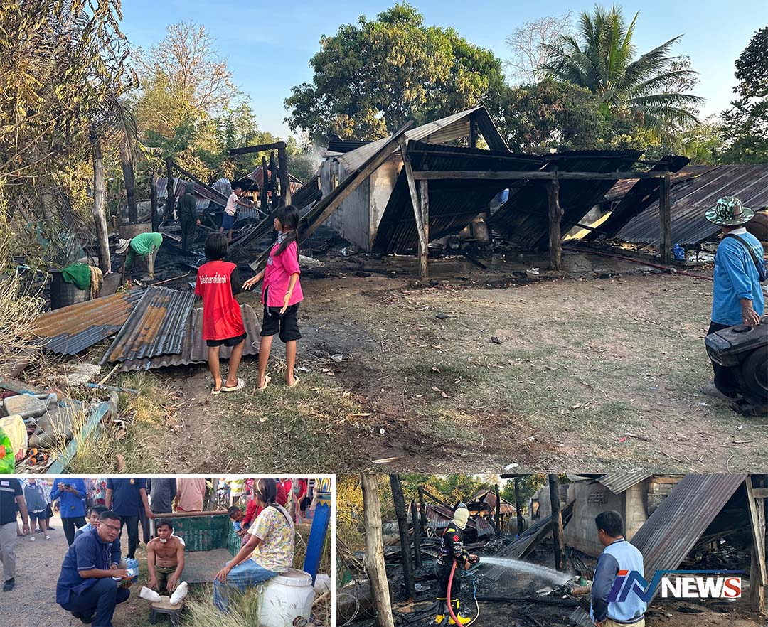 ลุงวัย50 ปีชาวเทพสถิตเข่าอ่อนเห็นบ้าน ถูกไฟเผาวอดทั้งหลงคาดเสียหาย5แสน