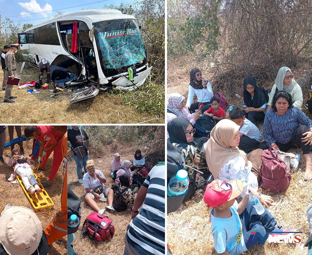 หวิดเกิดโศกนาฏกรรมทัวร์ชาวมาเลเซีย พวงมาลัยค้างวิ่งลงข้างทางเจ็บ37คน