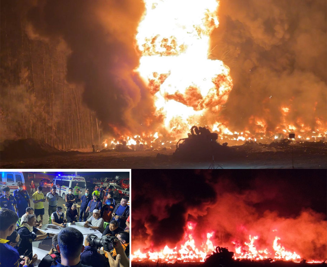 กาญจนบุรี -กาญจน์ วิ่งวุ่นทั้งคืนหน่วยดับเพลิงวิ่งวุ่นทั้งในและนอกจังหวัด ตกใจรับแจ้งว่าเกิดเหตุเพลิงไหม้โกดังเก็บสารทิน...
