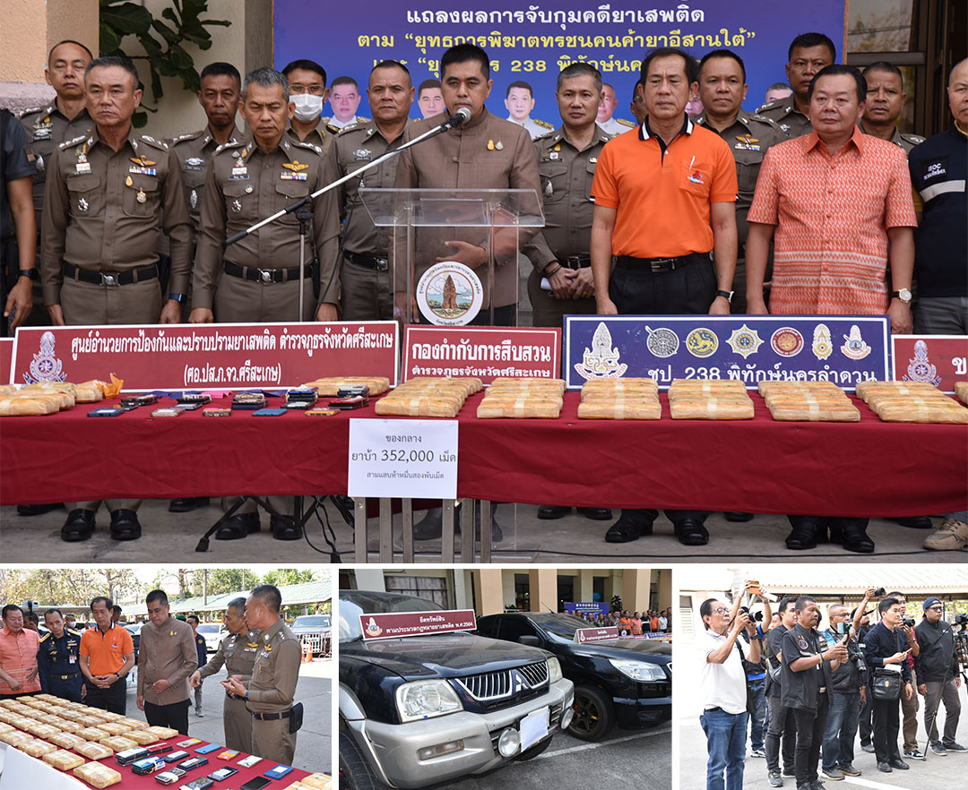 ผู้ว่าฯศรีสะเกษโชว์จับเครือข่ายยาเสพติด จับผู้ค้า398คนยาบ้า5แสนเม็ด/12ล.