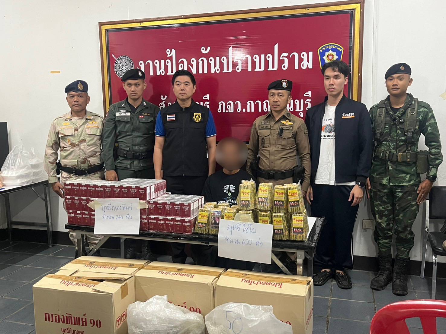 ทลายแหล่งพักบุหรี่เถื่อนชายแดนกาญจน์ เกือบ3ล้านซุกห้องเช่าที่สังขละบุรี