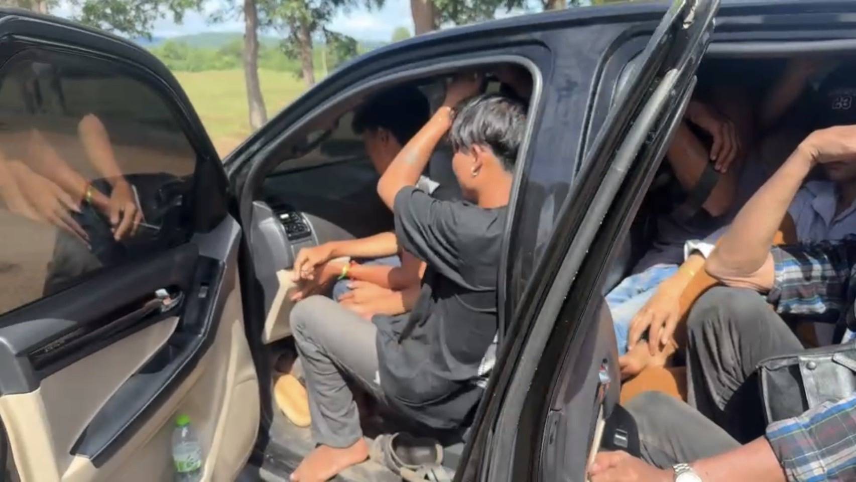 รวบคารถตร.ทล.กาญจนบุรีสกัดกระบะดำ ซุก17แรงงานเมียนมาพร้อมนายหน้า