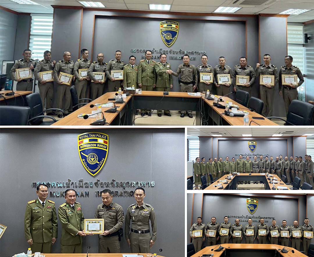 ตม.มุกดาหารต้อนรับผู้แทนจากสปป.ลาว มอบใบประกาศชมเชยในคดีสำคัญ