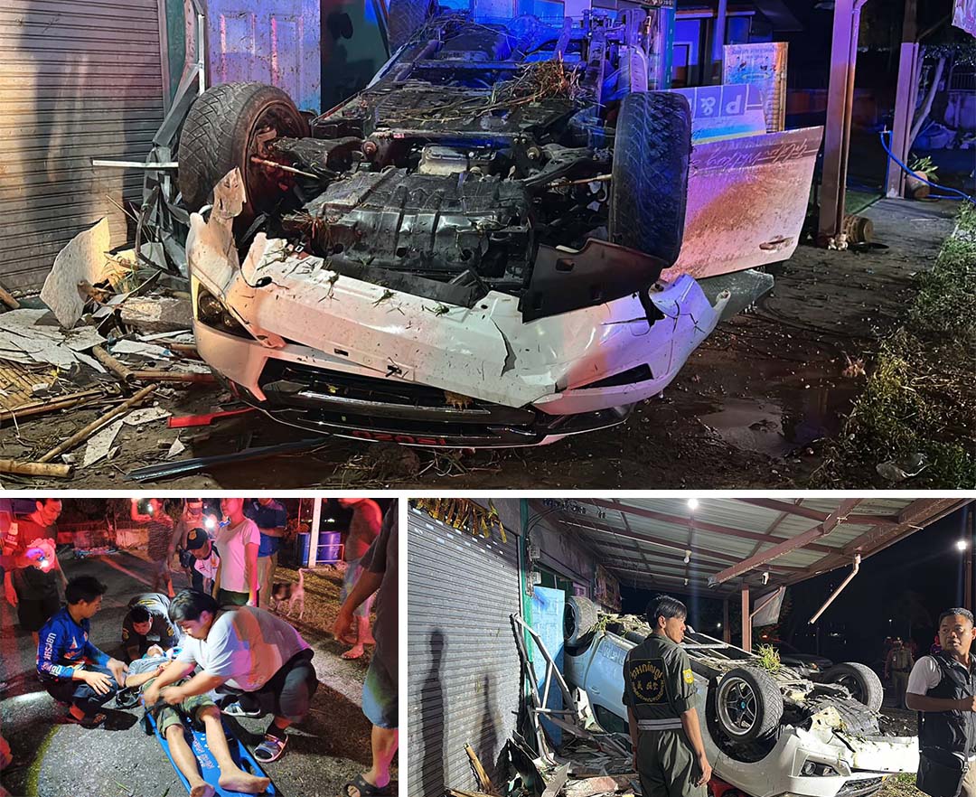 หนุ่ม29ปีซิ่งกระบะหนีด่านตำรวจสุดท้าย เสียหลักพุ่งชนห้องเช่าเจ็บ3ราย